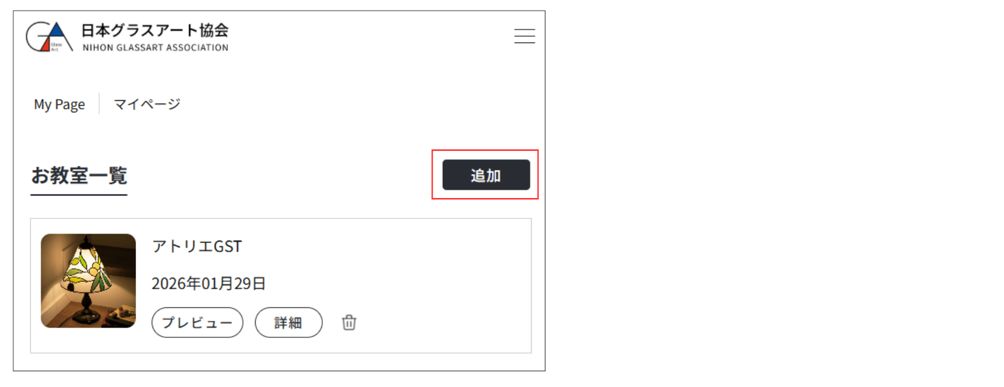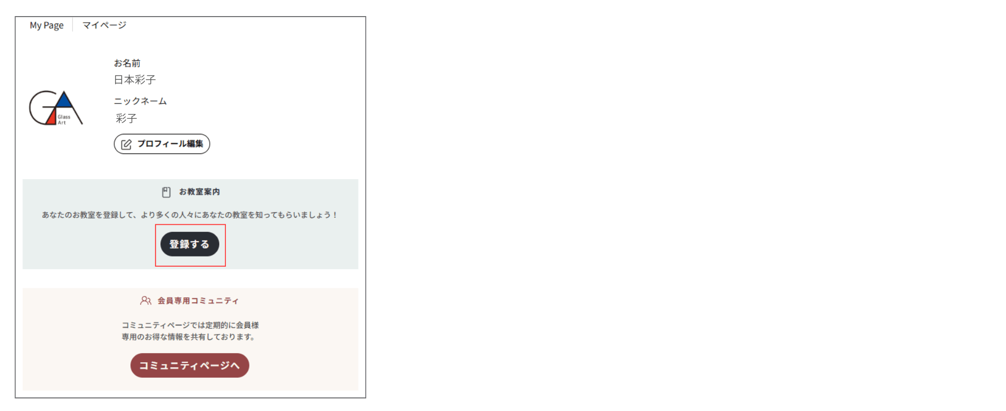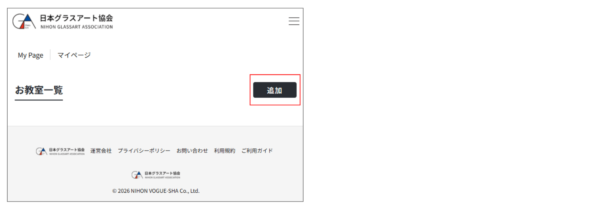 ※お教室登録は当サイトのログイン後の画面「マイページ」で行います。