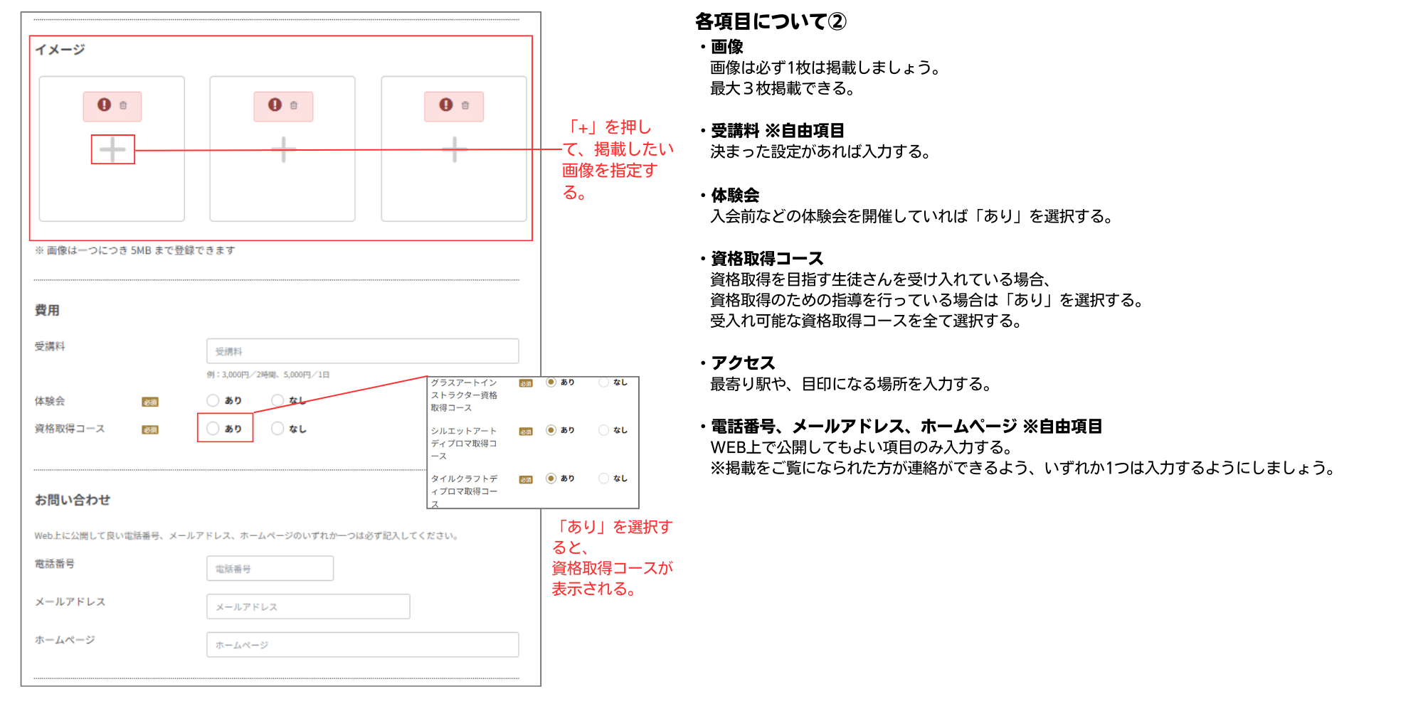 1.お教室案内の登録・編集ページの