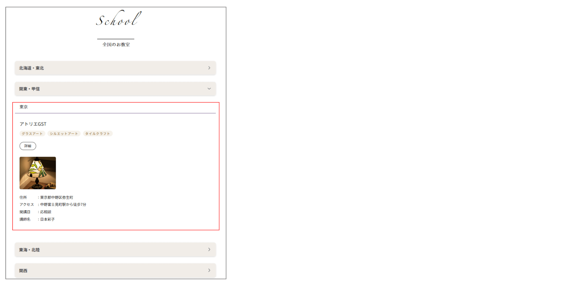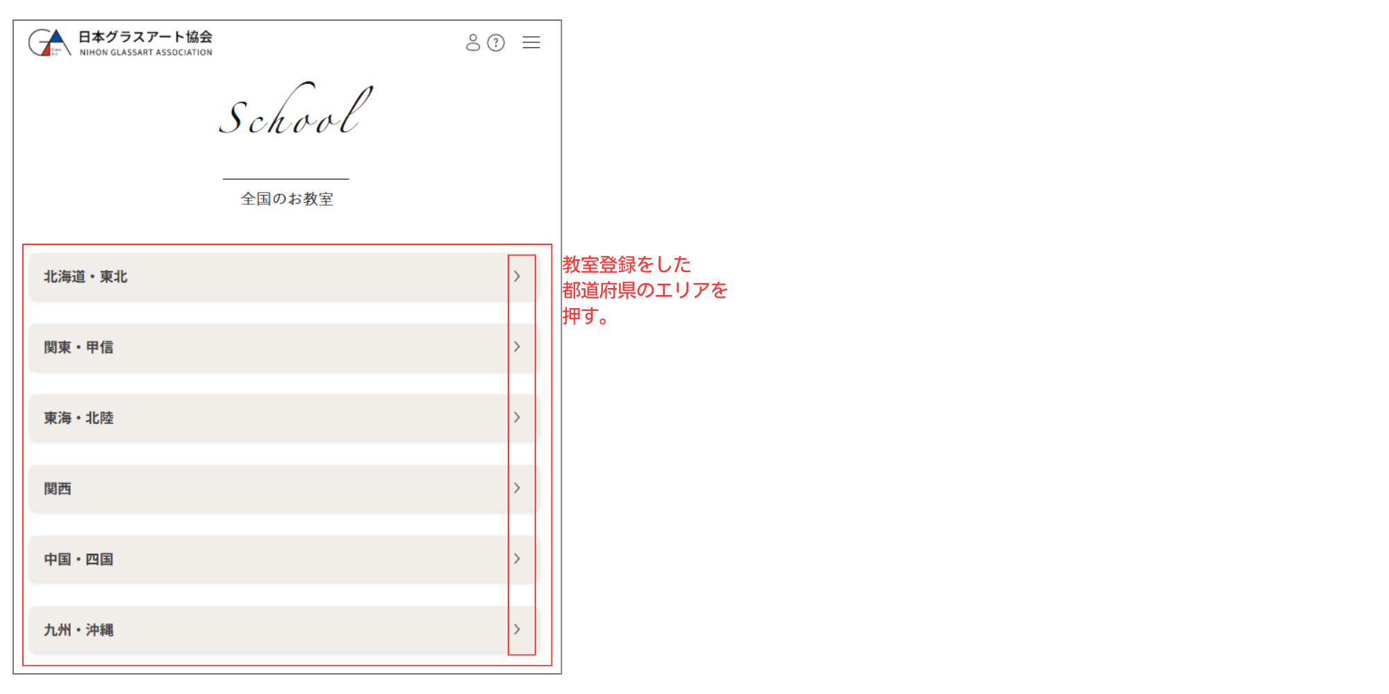 4.お教室登録した都道府県にお教室が表示される。
